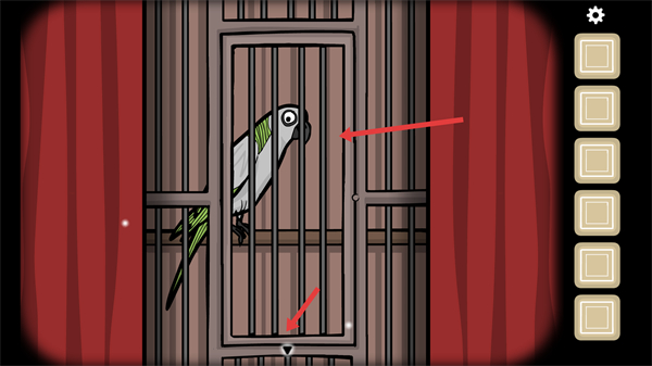 4、發現籠中鸚鵡后觀察其周圍是否有可互動的元素,嘗試與鸚鵡或籠子互動,獲取解謎的關鍵信息或道具。