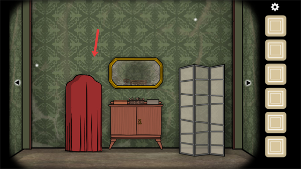 3、繼續移動探索留意房間內的紅色罩子、鏡子、柜子等區域,仔細觀察是否有隱藏的道具或解謎提示。