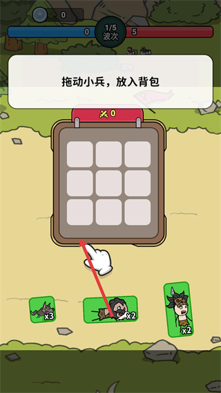1、戰斗前需將小兵如狼形、戰士形單位拖動放入背包格子,這是部署作戰單位的基礎步驟,需提前配置陣容。