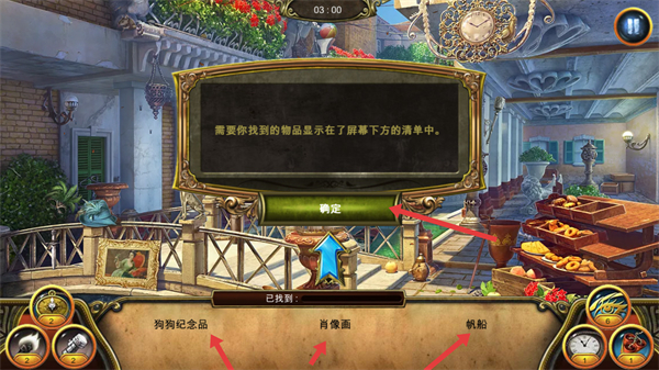 3、在尋物場景里點擊確定按鈕,查看屏幕下方的物品清單,明確需要尋找的物品,開始在場景搜尋。