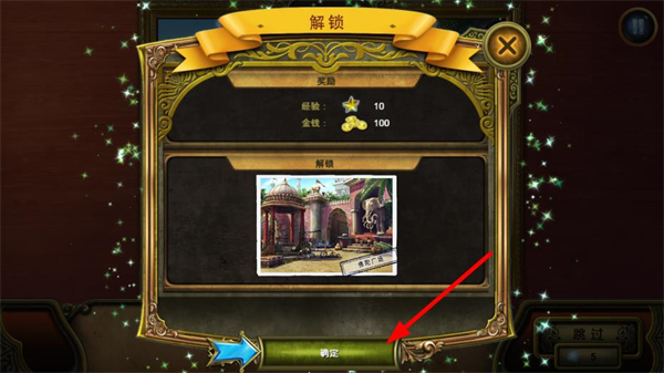 3、完成拼圖后查看解鎖獎勵界面,獲取經驗與金錢獎勵,點擊確定按鈕結束當前拼圖關卡的挑戰。