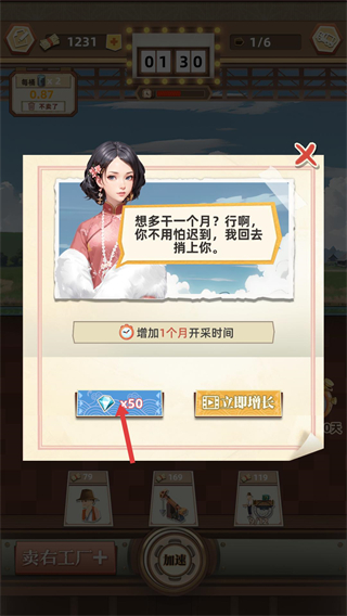 3、消耗50鉆石可增加1個月開采時間,延長資源獲取周期,有助于積累更多資本以拓展產業。