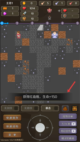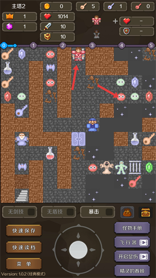 3、進入主塔2后探索地圖中的各類怪物和NPC,合理規劃路線,利用鑰匙開啟相應門鎖,推進關卡進度。
