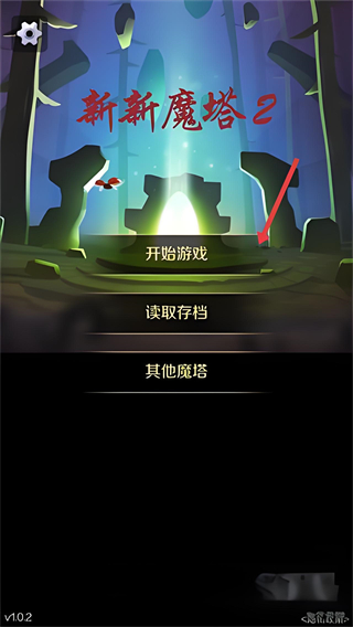 1、在游戲主界面點擊開始游戲按鈕,進入新新魔塔2的冒險世界,開啟魔塔探索之旅。