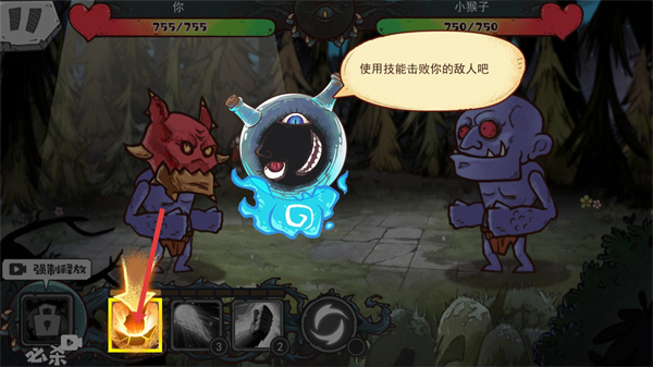 2、戰斗中點擊技能圖標如火球術可攻擊敵人,技能是戰斗中的核心輸出手段,需根據敵人血量合理釋放。