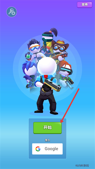 1、進入游戲時,點擊綠色開始按鈕,即可開啟游戲,進入射擊對戰的冒險之旅。