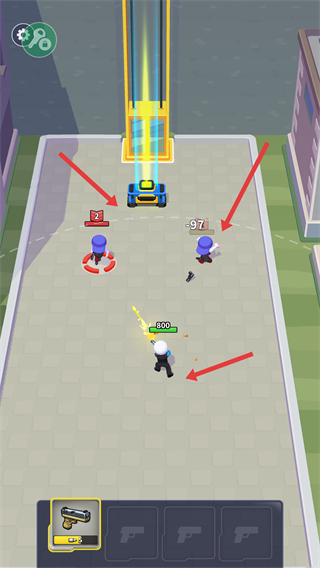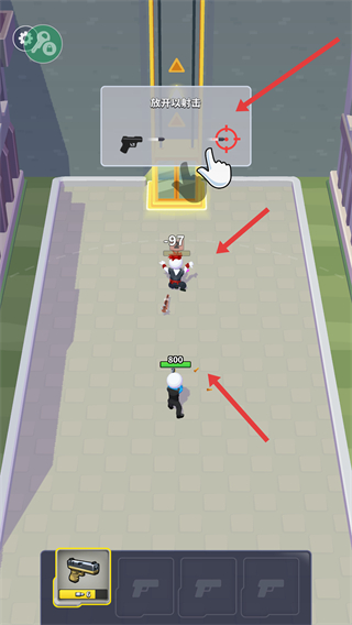 2、對戰時,按照放開以射擊的提示操作,瞄準敵方角色射擊,可對其造成傷害,推進對戰進程。