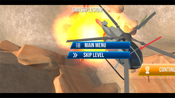 4、若車輛失控爆炸,可選擇SKIPLEVEL跳過該關卡,或返回主菜單重新開始,總結經驗調整駕駛策略。