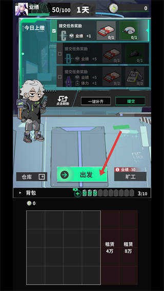 1、點擊出發按鈕開啟外出收集資源的行程,這是獲取任務物品、提升業績的關鍵一步。