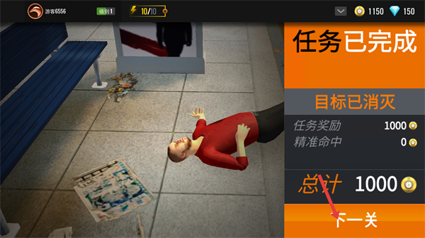 3、消滅目標后會顯示任務完成界面,可獲得金幣獎勵,點擊下一關即可推進至后續任務,積累資源提升等級。