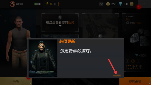 4、若出現游戲更新提示,點擊點擊繼續可跳轉至更新流程,完成更新后才能繼續體驗后續內容。