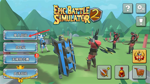 1、點擊單人戰役進入關卡模式,這是熟悉游戲戰斗規則、積累資源的核心入口,后續可解鎖其他玩法如自定義。