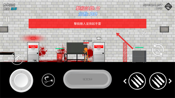4、撿起手雷后可在合適時機使用,對敵人造成傷害,同時繼續擊殺敵人,提升擊殺數和分數。