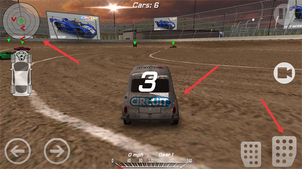 2、在賽道上利用方向鍵控制車輛方向,點擊油門鍵加速,觀察小地圖和其他車輛位置,規劃行駛路線。