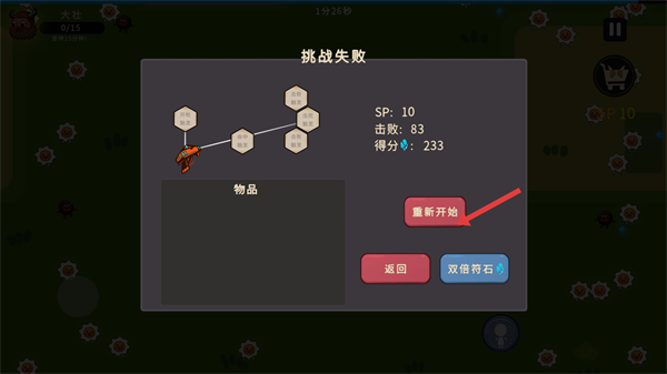 4、若挑戰失敗點擊重新開始按鈕,總結經驗調整戰斗策略,再次嘗試挑戰爭取堅持更久。