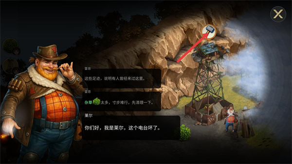 2、與NPC互動后,點擊電臺建筑上的工具標識,可觸發修復等互動操作,解鎖新的功能或推進劇情。