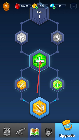 2、升級界面的核心技能節點如綠色十字標識是優先升級的目標,解鎖后可激活關聯的其他技能,逐步完善角色屬性體系。