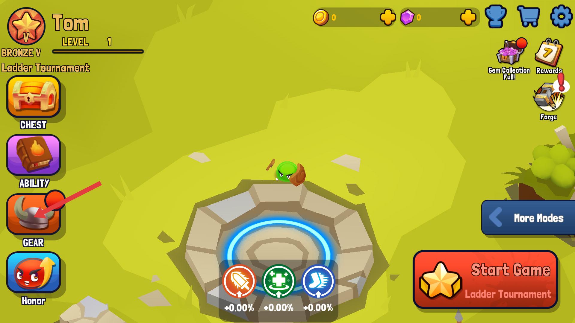 1、點擊左側GEAR按鈕進入裝備界面,可管理角色的外觀、武器、配色等配置,是提升角色戰力與個性化的核心入口。