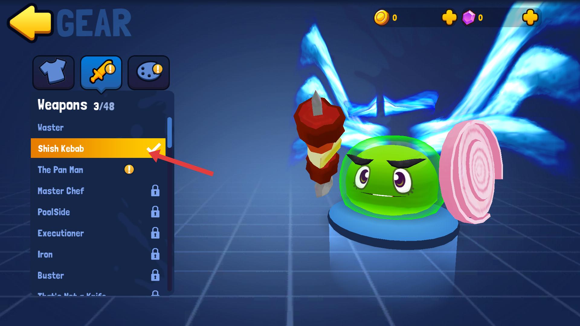 3、切換至武器Weapons標簽頁,選擇已解鎖的武器,不同武器對應不同的攻擊屬性,需根據戰斗場景適配。