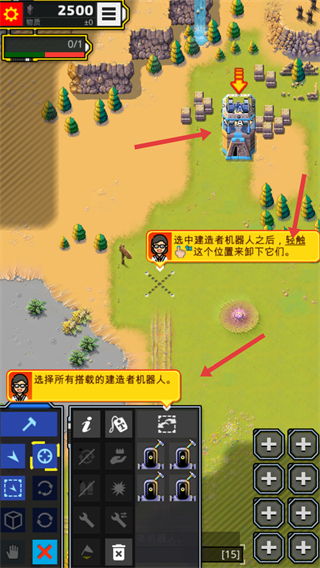 2、選中所有搭載的建造者機器人,輕觸指定位置卸下它們,以便利用這些機器人開展基地建設工作。