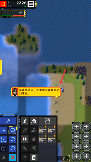 4、將重型運輸艦移動到海灘登陸區,在此區域讓部隊登陸,進而開展消滅東部島嶼敵人的任務,推進游戲進程。