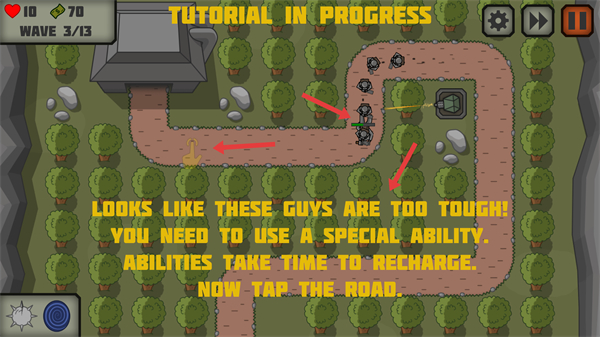3、在WAVE3遇到強力敵人時需使用特殊能力,按照提示輕觸道路來觸發,這些能力需要時間充能,要合理把握使用時機。