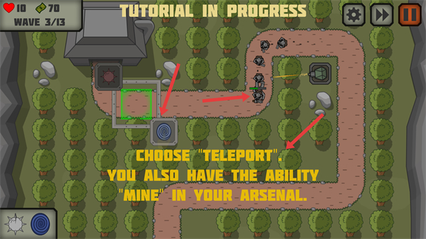4、選擇TELEPORT特殊能力同時注意自己arsenal中的MINE能力,根據戰場情況靈活運用,助力抵御強敵。