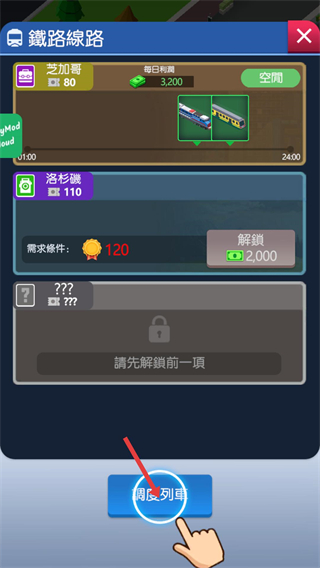 1、通過界面中的線路圖標查看運營狀態,同時會獲得補貼等收益,推進車站的資源積累與規模擴張。