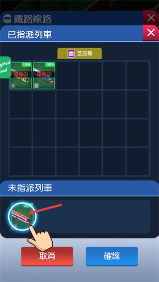 3、選擇未指派列車中的列車,點擊后將其添加至已指派列車列表,點擊確認完成線路的列車配置。