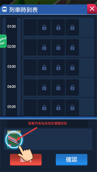 4、在列車時刻表界面,選擇對應時段并添加已配置的列車,點擊確認設定列車的發車時刻,保障線路的定時運營。