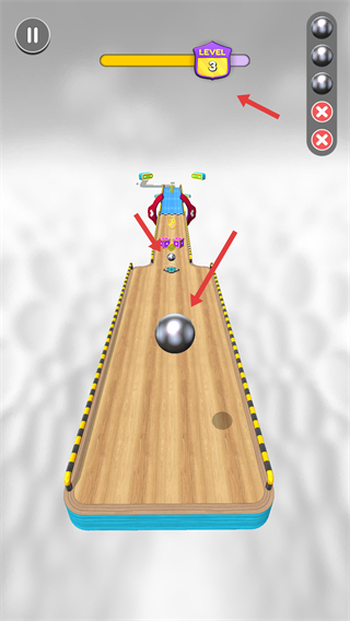 3、進入Level3后控制金屬球在軌道上移動,收集前方的道具,注意軌道的變化和新增的障礙,繼續向前推進以提升等級。