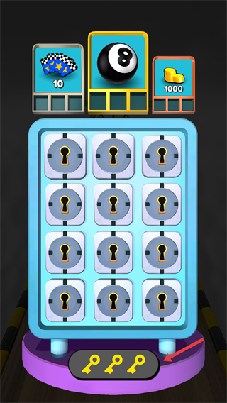 4、在鑰匙解鎖界面使用收集到的鑰匙開啟鎖孔,可解鎖賽車、8號球、金幣等獎勵,合理使用鑰匙以獲取更多游戲資源。