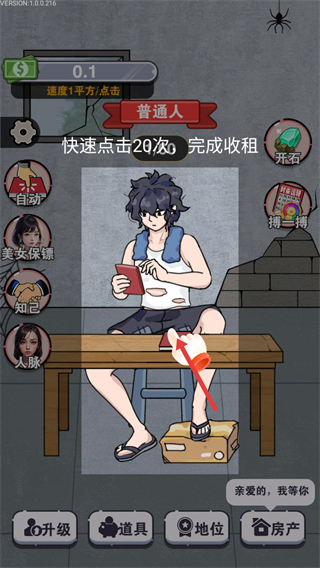 2、在主界面快速點擊目標區域如角色附近,完成收租操作以積累初始資金,這是游戲前期獲取資源的基礎方式。