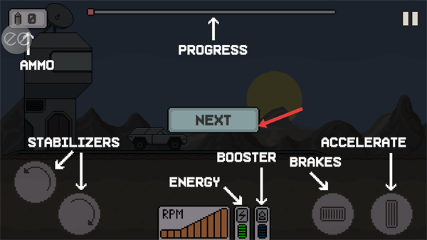 2、在駕駛界面熟悉STABILIZERS,ACCELERATE,BRAKES等按鍵功能,點擊NEXT按鈕開始駕駛任務。