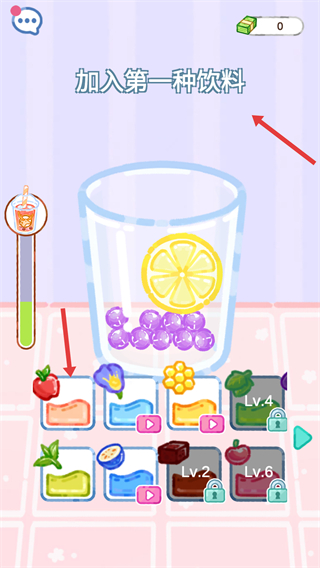 3、在杯子中加入波霸后,加入第一種飲料,選擇合適的飲料類型,為奶茶增添風味,繼續完成制作。