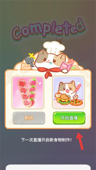 1、制作完成后點擊開始直播按鈕開啟直播,下一次直播可開啟新食物制作,通過直播推廣食物獲取收益。