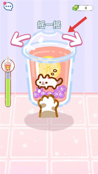2、制作奶茶時按照提示搖一搖杯子,使奶茶中的原料充分混合,完成這一步驟以推進制作流程。