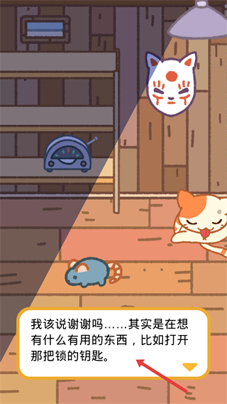 1、跟隨劇情提示關注小貓的互動和對話,了解游戲的初始劇情發展,為后續探索和任務做準備。