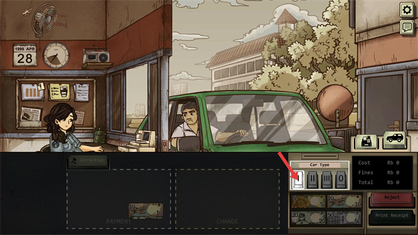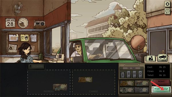 3、確認收費金額后,點擊PrintReceipt打印收據,完成該車輛的收費流程,同時積累資金以完成任務目標如繳納房租。