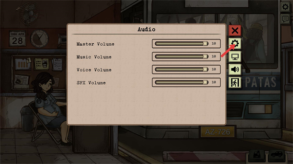 1、點擊界面右上角的設置圖標,可打開設置菜單,在處理車輛的間隙調整游戲參數。