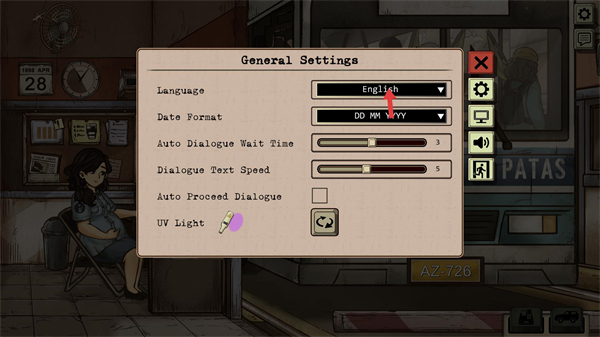 3、在GeneralSettings界面,可調整LanguagDateFormat等選項,優化游戲的顯示與交互體驗。