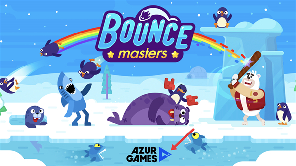 1、這是BounceMasters游戲由AzurGames開發,背景是冰雪世界,有企鵝、鯊魚等角色隨意點擊屏幕開始游戲。