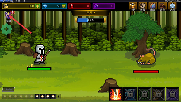 1、點擊界面左上角英雄按鈕,進入角色養成界面,可調整技能、屬性等,提升角色在世界2戰斗中的戰力。