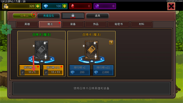 2、進入召喚界面,消耗材料可抽取魔法卡,提升角色技能效果,也可消耗鉆石抽取更高品質的卡池。