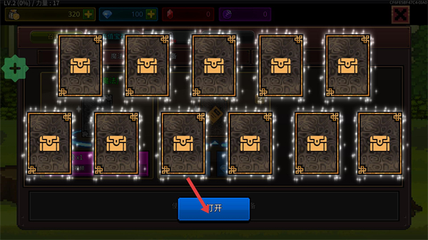3、在卡包界面點擊打開,可開啟獲得的卡包,獲取各類屬性加成道具如屬性石,增強角色能力。