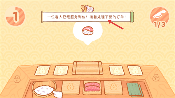 4、完成一位客人的訂單后接著處理下面的訂單,需繼續關注新的食材提示,保持制作的連貫性,逐步完成所有訂單任務。