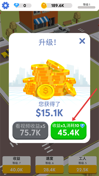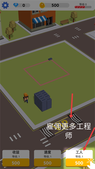3、要升級收益、速度和工人等級,隨著等級提升,建筑速度和收益會大幅增加,還能提升整體等級,解鎖更多內容。