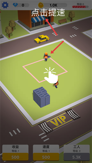 2、點擊屏幕可提速讓工人工作效率更高,同時注意觀察工人的工作狀態,及時點擊以保持高速建設。