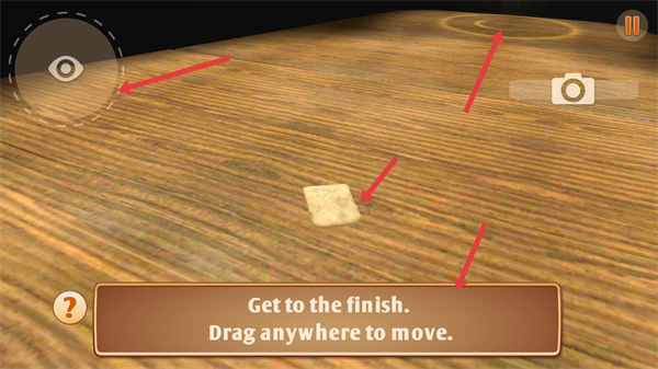 2、游戲中拖動屏幕可控制面包移動,目標是到達終點,左側的眼睛圖標可調整視角,方便觀察場景和規劃路線。