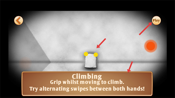 3、攀爬時要注意觸摸屏幕來保持抓握,不觸摸則會失去抓握,右上角的箭頭按鈕可推進游戲流程,需及時點擊。